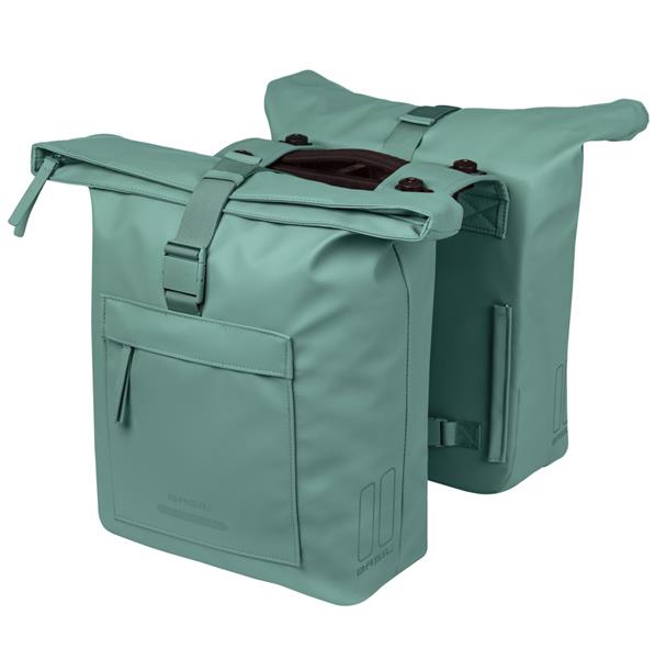 De Basil Brooklyn dubbele fietstas is ontworpen voor forenzen en stadsfietsers die stijl en functionaliteit willen combineren. Met een inhoud van 41 liter biedt deze tas ruimte voor een laptop, documenten, sportkleding of boodschappen. Het cleane ontwerp met strakke lijnen oogt professioneel en modern. De tas is waterdicht (IPX3), voorzien van een vouwsluiting met gesp en handige buitenvakken. Dankzij de voorgemonteerde MIK-adapterplaat is bevestiging eenvoudig en veilig. Gemaakt van gerecycled PET, volledig PFAS-vrij en voorzien van een repairzipper voor langdurig gebruik. Een duurzame en stijlvolle oplossing voor dagelijks vervoer, van huis naar werk en verder.