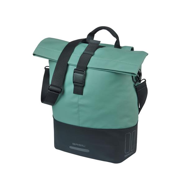 De Basil Cove shopper is een stijlvolle en functionele fietstas voor dagelijks gebruik. Het ingetogen ontwerp past moeiteloos bij elke fiets en gelegenheid. Met een inhoud van 14 tot 16 liter biedt de tas voldoende ruimte voor dagelijkse benodigdheden. De waterafstotende vouwsluiting, het ritsvak en de afneembare schouderband zorgen voor praktisch gebruiksgemak. Dankzij de MIK Hooks is de tas eenvoudig te bevestigen en los te maken van de bagagedrager. Gemaakt van gerecycled PET en afgewerkt met vegan leer is de Cove volledig PFAS-vrij en waterproof. Een ideale combinatie van design, duurzaamheid en comfort voor het moderne stadsleven.