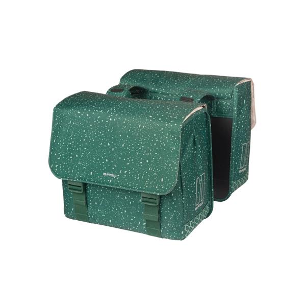Maak kennis met de Basil Flair, de perfecte metgezel voor al je fietsavonturen! Of je nu dagelijks naar je werk fietst of een dagje uit gaat met vrienden, deze dubbele fietstas is ontworpen om aan al jouw behoeften te voldoen. Hij is gemaakt van sterk, waterafstotend gerecycled polyester en verkrijgbaar in een stijlvolle groene kleur. De jaren 70-geïnspireerde print maakt de tas niet alleen vrolijk, maar ook een echte blikvanger. Met een royale inhoud van 35 liter heeft de Basil Flair voldoende ruimte voor al je spullen. De stevige binnenvoering biedt extra bescherming, terwijl het aansnoerkoord ervoor zorgt dat je alles veilig kunt opbergen. Door de reflectie op alle zijden ben je ook beter zichtbaar in het verkeer.