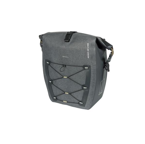 De Basil Navigator Storm L MIK Hooks is een sportieve, functionele enkele fietstas die 100% waterdicht is (IPX3). Dankzij het slimme design neem je al je spullen eenvoudig mee, zelfs een fietshelm via het verstelbare elastiek. De roltopsluiting is op drie manieren te bevestigen en reflecterende logo’s zorgen voor zichtbaarheid in het donker. Met de geïntegreerde MIK Hooks bevestig je de tas snel op je bagagedrager. De afneembare schouderband maakt van deze fietstas moeiteloos een schoudertas. Perfect voor elk avontuur!