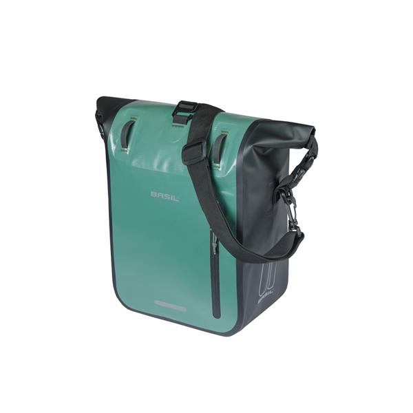 De Basil Rivo M enkele fietstas is speciaal ontworpen voor fietsers die er graag op uit trekken, of je nu een dagtocht maakt of een weekend weg plant. Deze enkele tas combineert een strakke, sportieve look met slimme functies die zorgen voor comfort en gebruiksgemak onderweg. De stijlvolle combinatie van silvergreen met zwart geeft een frisse en moderne uitstraling.