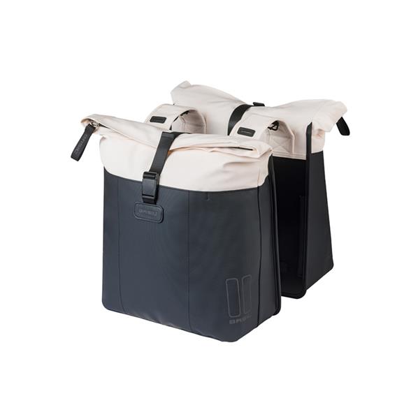 De Basil Vive dubbele fietstas biedt ruimte en stijl voor alle dagelijkse ritten. Met een inhoud van 28 tot 35 liter is deze tas ideaal voor boodschappen, school, of een dagje uit. Het cleane ontwerp geeft een frisse, stedelijke uitstraling die bij elke fiets past. De tas is waterdicht en sluit af met een praktische vouwsluiting en gesp. Voor kleinere spullen zijn er handige buitenvakken. Dankzij het Basil Universal Bridge System past de tas op vrijwel alle bagagedragers, inclusief e-bikes. Gemaakt van gerecycled PET, PFAS-vrij en voorzien van een repairzipper voor extra duurzaamheid.
