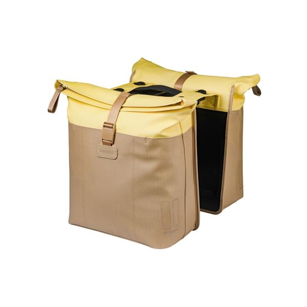 De Basil Vive dubbele fietstas biedt ruimte en stijl voor alle dagelijkse ritten. Met een inhoud van 28 tot 35 liter is deze tas ideaal voor boodschappen, school, of een dagje uit. Het cleane ontwerp geeft een frisse, stedelijke uitstraling die bij elke fiets past. De tas is waterdicht en sluit af met een praktische vouwsluiting en gesp. Voor kleinere spullen zijn er handige buitenvakken. Je bevestigt de Basil Vive dubbele tas MIK eenvoudig dankzij de voorgemonteerde MIK-adapterplaat die voorzien is van een handige slotfunctie voor extra veiligheid. Gemaakt van gerecycled PET, PFAS-vrij en voorzien van een repairzipper voor extra duurzaamheid.